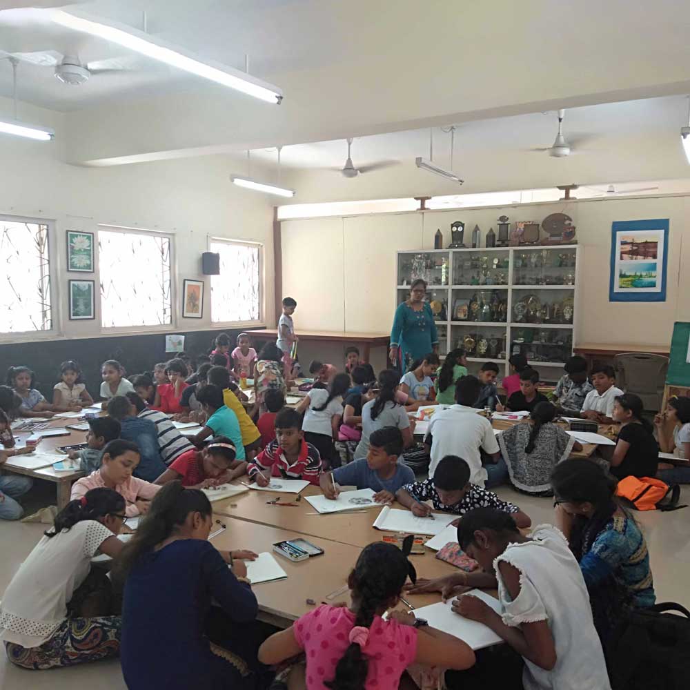 We have a flourishing Art Class. Our young artists have competed at local, national and international levels and have won over 3000 prizes which are on display at our Centre. Many of our art students have studied at JJ School of Arts and some are now working as Art Teachers.
